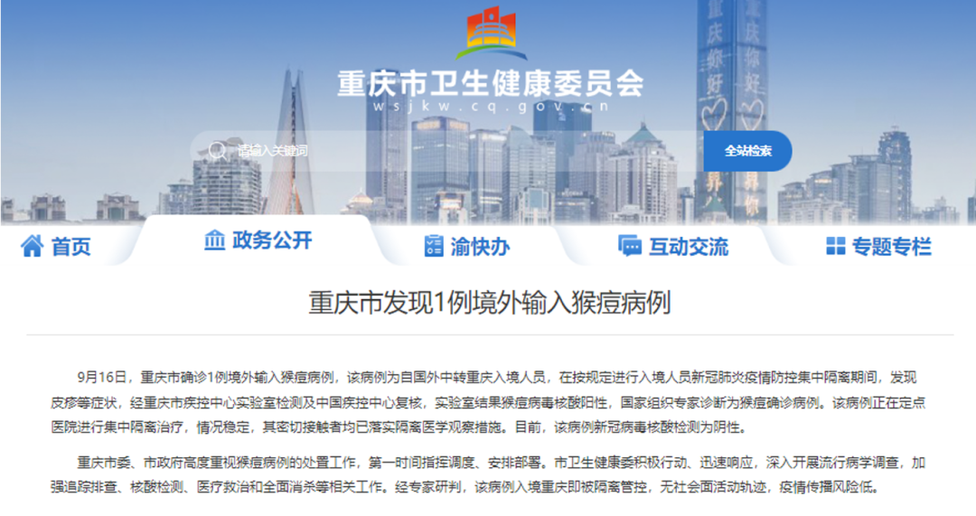 2022年5月7日,英國(guó)向世界衛(wèi)生組織(WHO)報(bào)告了一名猴痘確診病例。5月21日,WHO稱有12個(gè)非猴痘流行國(guó)向其報(bào)告了猴痘疑似/確診病例,且5月13日以來(lái)報(bào)告的所有病例均沒(méi)有猴痘流行地區(qū)的旅居史,大部分病例為MSM(男男性行為者),提示本次猴痘病毒可能在人際間發(fā)生了廣泛傳播,未來(lái)可能確診更多猴痘病例,須提高對(duì)猴痘病毒的認(rèn)識(shí),加強(qiáng)監(jiān)測(cè)工作。7月23日,世界衛(wèi)生組織總干事譚德塞宣布,全球猴痘疫情已構(gòu)成國(guó)際關(guān)注的突發(fā)公共衛(wèi)生事件(PHEIC)。