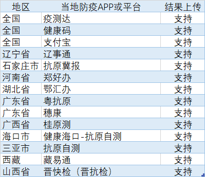 部分省市抗原結(jié)果上傳平臺(tái)舉例,伯杰抗原結(jié)果支持且不局限以下平臺(tái):