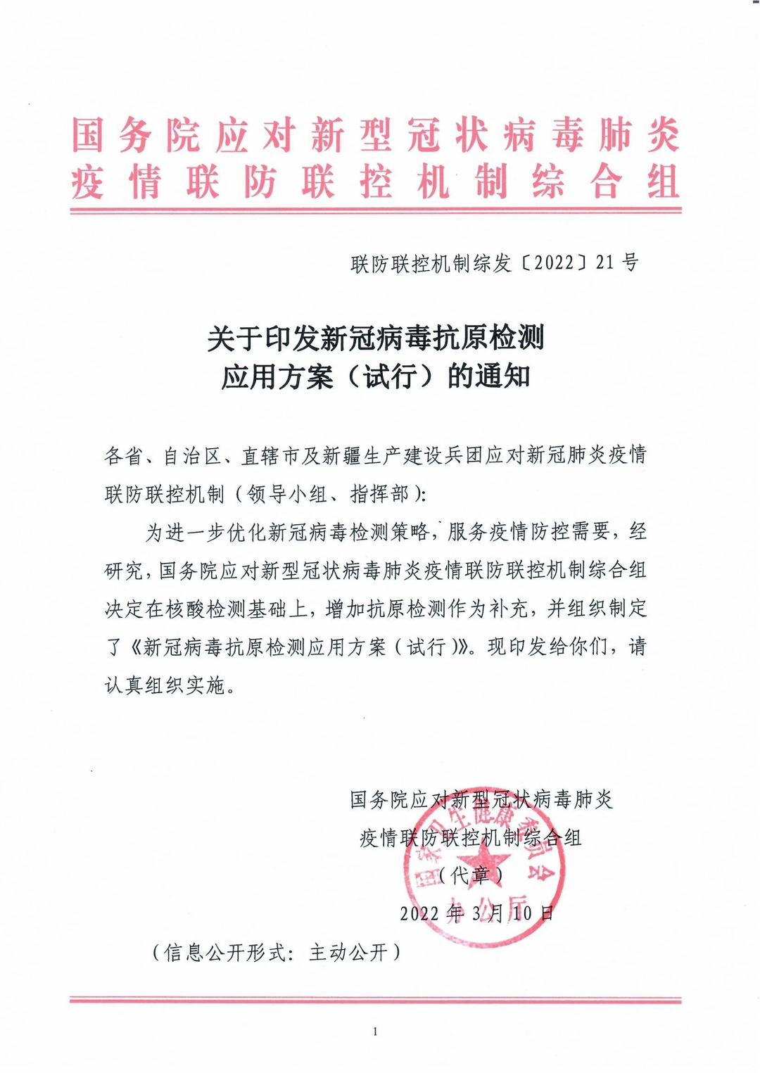3月10日,國務(wù)院應(yīng)對新冠病毒肺炎疫情聯(lián)防聯(lián)控機制綜合組發(fā)布《關(guān)于印發(fā)新冠病毒抗原檢測應(yīng)用方案(試行)的通知》(以下簡稱“通知”)。