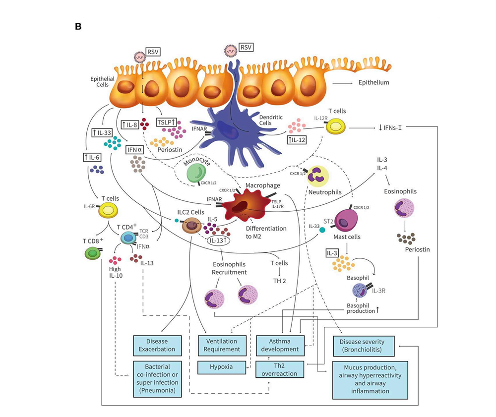 7.Vázquez Y, et al. Cytokines in the Respiratory Airway as Biomarkers of Severity and Prognosis for Respiratory Syncytial Virus Infection: An Update. Front Immunol. 2019 Jun 4;10:1154.