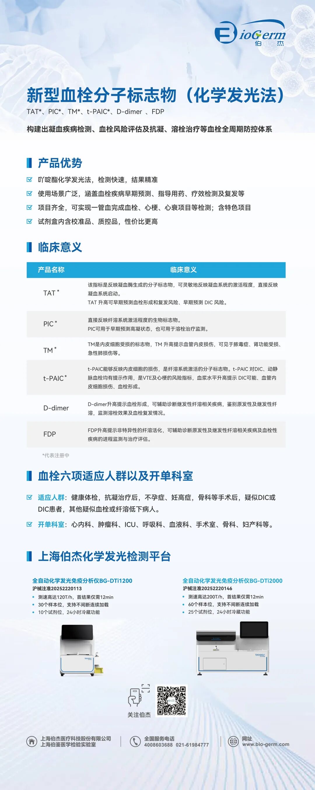 D-二聚體作為反映體內(nèi)凝血激活與纖溶亢進的特異性標志物,在血栓性疾病的排除診斷、療效監(jiān)測,以及惡性腫瘤等多種病癥的病情評估、預后判斷中具有不可替代的臨床價值。