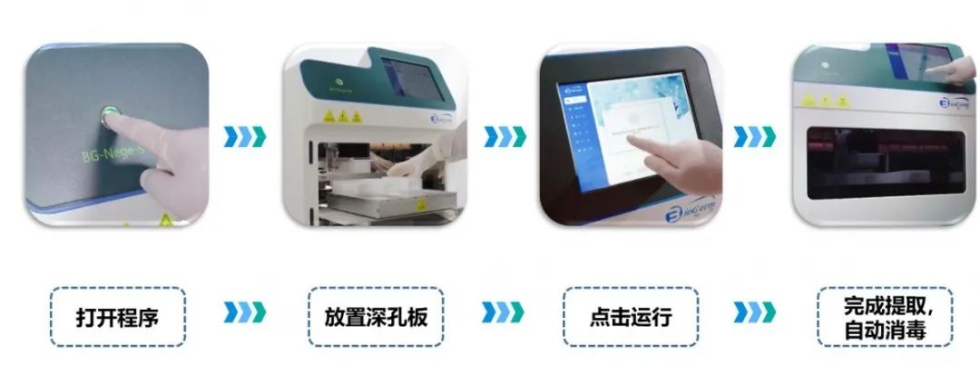 經(jīng)過多年的技術(shù)探索與沉淀,伯杰醫(yī)療隆重推出時(shí)效更快、操作更便捷、生物安全性更高的BG-Nege-96全自動(dòng)核酸提取儀。BG-Nege-96提取儀采用先進(jìn)的磁珠技術(shù)進(jìn)行磁珠轉(zhuǎn)移、分離,搭配伯杰核酸提取試劑盒,96個(gè)樣本提取最快僅需9分鐘。