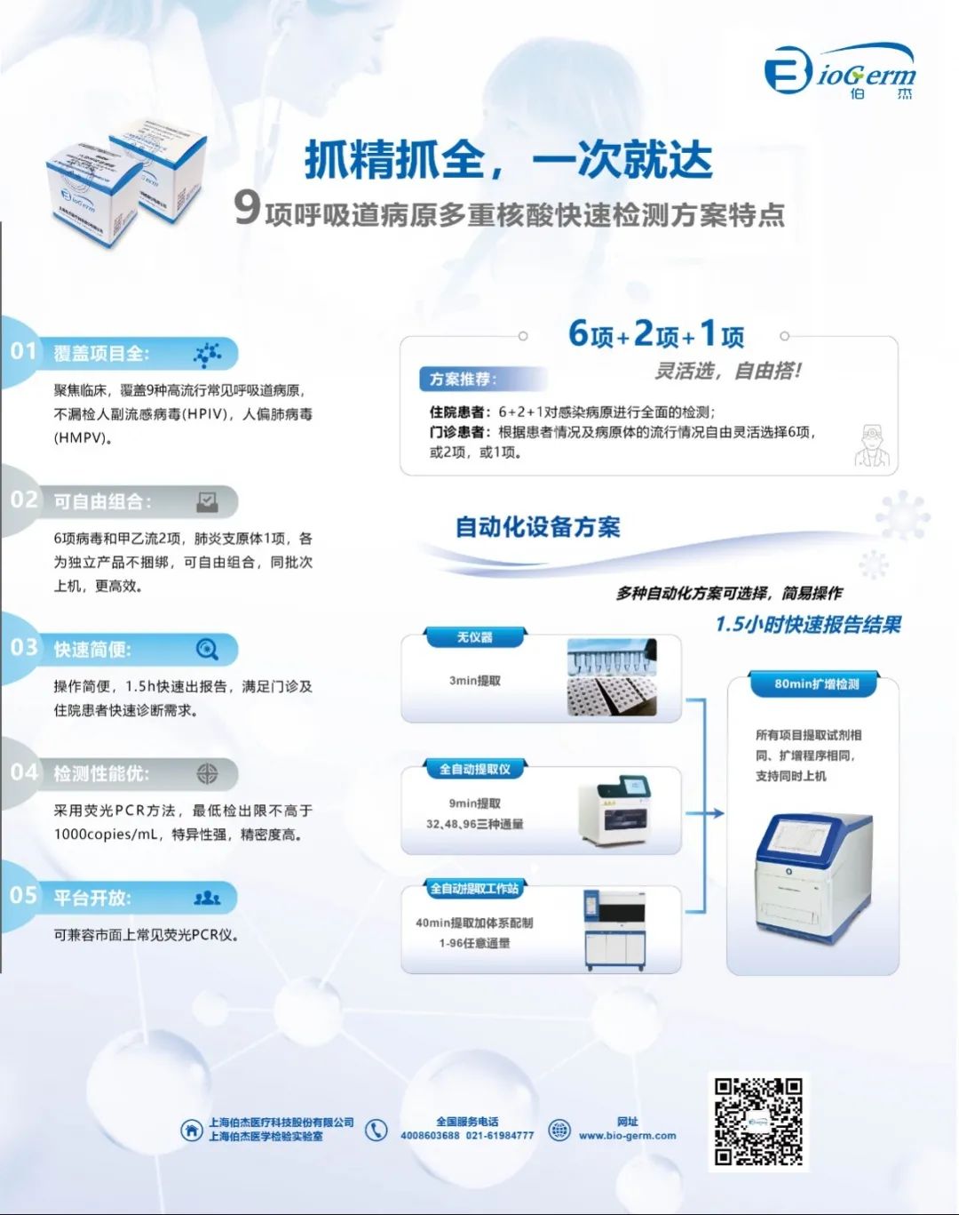 聚焦臨床,包含流感病毒、人合胞病毒、人偏肺病毒、副流感病毒、腺病毒等10種常見(jiàn)病原,覆蓋90%以上的呼吸道感染病原體,不漏檢人發(fā)病高的副流感病毒(HPIV)、人偏肺病毒(HMPV)。