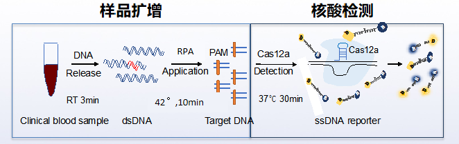 另外,Cas蛋白接觸靶標序列后會被激活出無差別的反式切割活性,將周圍一切可切割的核酸序列高效切割,從而起到放大信號的作用。同時具備特異性識別和無差別切割特征的CRISPR診斷系統(tǒng)就是精準和高效的代名詞。