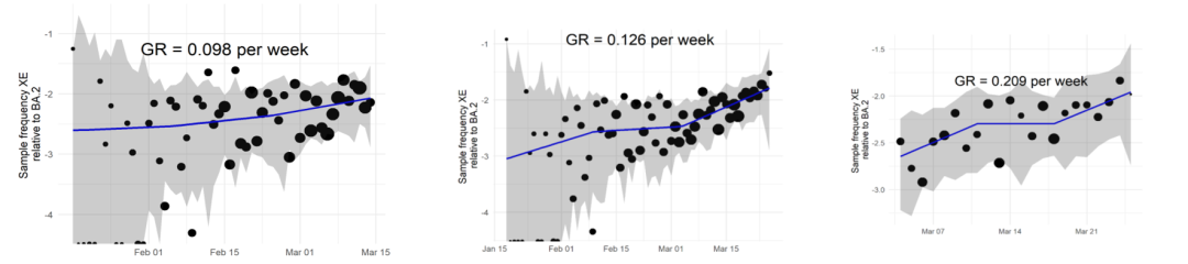 圖4:不同時(shí)期XE相對BA.2的傳播速度