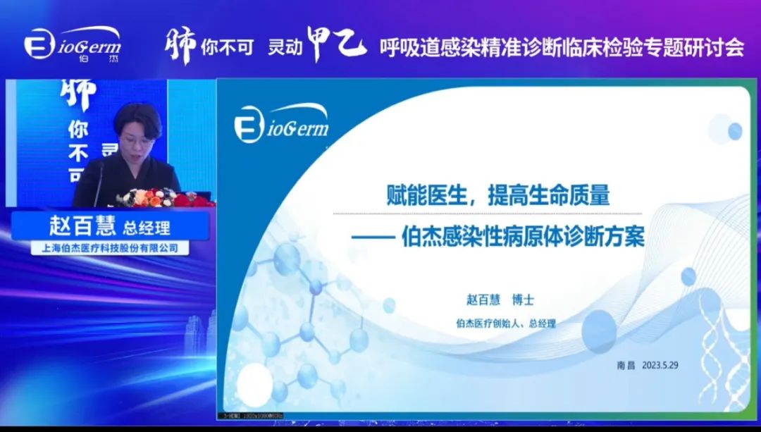 5月29日上午,伯杰醫(yī)療以“「肺」你不可,靈動(dòng)「甲乙」”為主題舉辦了呼吸道感染精準(zhǔn)診斷臨床檢驗(yàn)專題研討會(huì),線上線下同步進(jìn)行,現(xiàn)場大咖云集。此次研討會(huì)有幸邀請到南昌大學(xué)第二附屬醫(yī)院王小中教授擔(dān)任大會(huì)主席。同時(shí)還邀請到:湖南省人民醫(yī)院鐘禮立教授、深圳市兒童醫(yī)院鄧?yán)^巋教授、十堰太和醫(yī)院彭春艷教授、湖南省人民醫(yī)院袁浩教授、以及上海伯杰醫(yī)療科技股份有限公司總經(jīng)理趙百慧參加此次專題會(huì)。