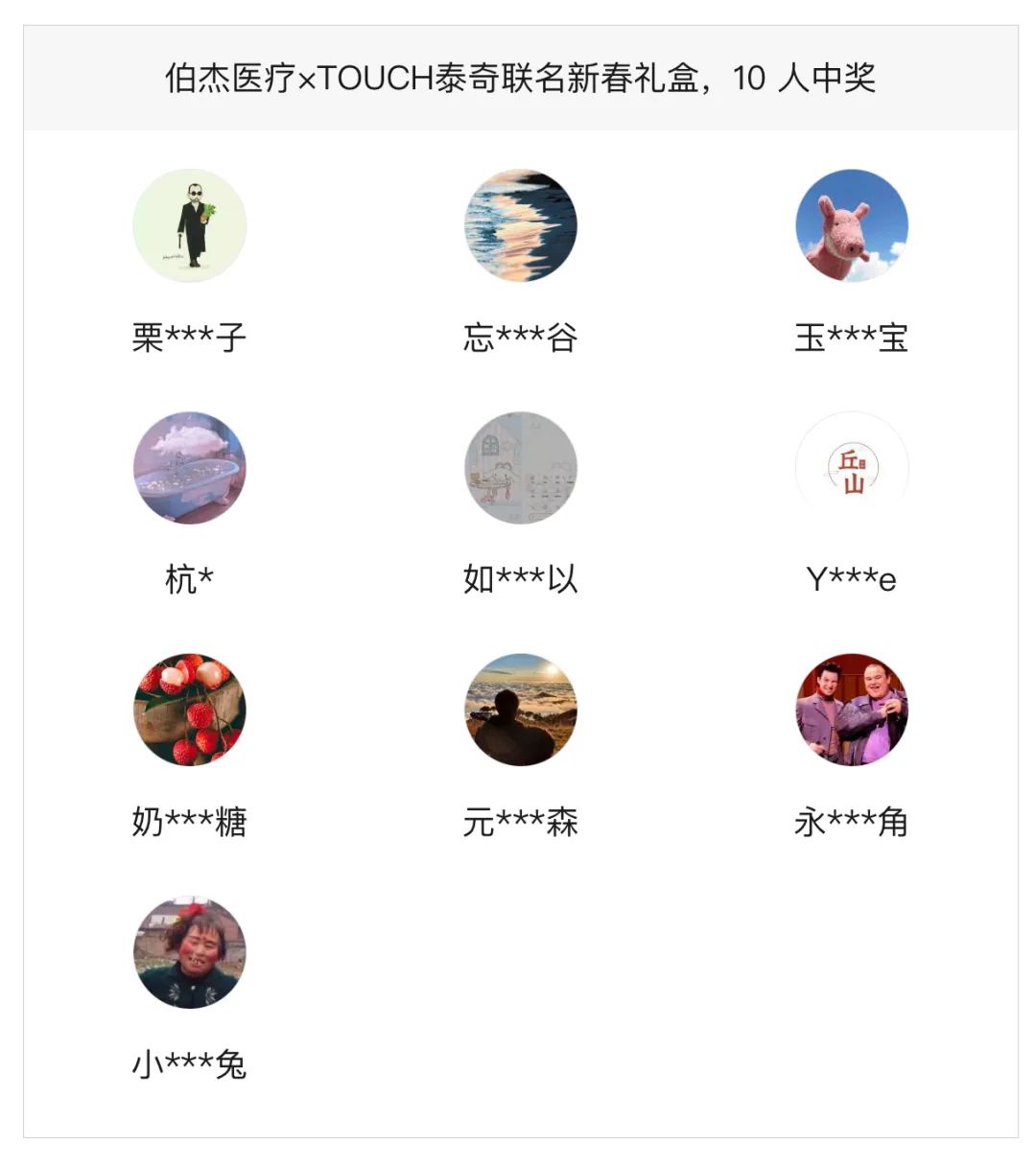 恭喜以上粉絲獲得【伯杰醫(yī)療xTOUCH泰奇】聯(lián)名新春禮盒一份,禮品將于五個(gè)工作日內(nèi)安排寄出,請(qǐng)各位耐心等待。