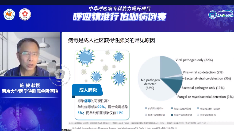 施毅教授強(qiáng)調(diào):感染性疾病引起嚴(yán)重的疾病負(fù)擔(dān),過去在成人呼吸道感染方面關(guān)注細(xì)菌感染比較多,最近的一些研究發(fā)現(xiàn)在成人CAP中,病毒病原占20%-30%,過去在病毒病原方面我們重點(diǎn)只關(guān)注流感病毒為主,非流感病毒的感染也應(yīng)該引起重視。