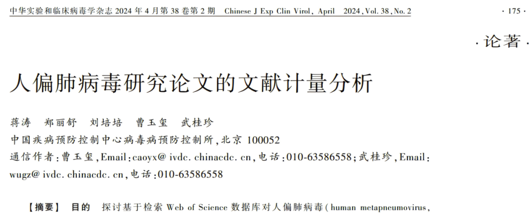 計(jì)量分析學(xué)是運(yùn)用統(tǒng)計(jì)手段對論文進(jìn)行定量或半定量分析,以揭示論文分布規(guī)律、預(yù)測學(xué)科發(fā)展。在最新的一篇文獻(xiàn)中,筆者通過檢索 Web of Science 數(shù)據(jù)庫,探討了HMPV的研究現(xiàn)況及發(fā)展趨勢。