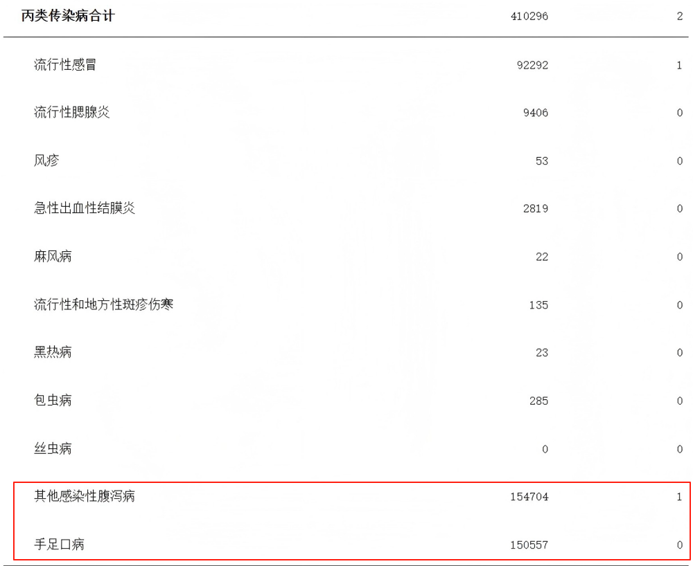 根據(jù)國(guó)家疾病預(yù)防控制局監(jiān)測(cè)預(yù)警司發(fā)布的《2025年6月份全國(guó)法定傳染病疫情概況》[2],6月丙類傳染病共報(bào)告發(fā)病410,296 例,死亡2例。報(bào)告發(fā)病數(shù)居前兩位的病種依次為其他感染性腹瀉病和手足口病,手足口病病例數(shù)較上月激增近兩倍(5月報(bào)告病例數(shù)為52,036 例)?
