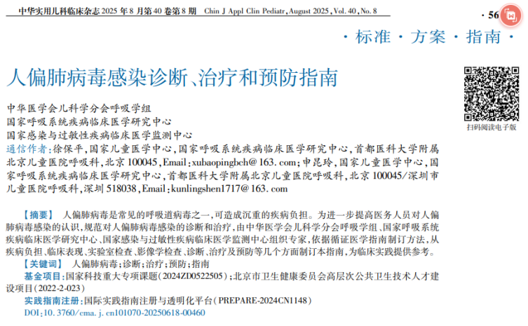 3. 《人偏肺病毒感染診斷、治療和預防指南》(2025年版)