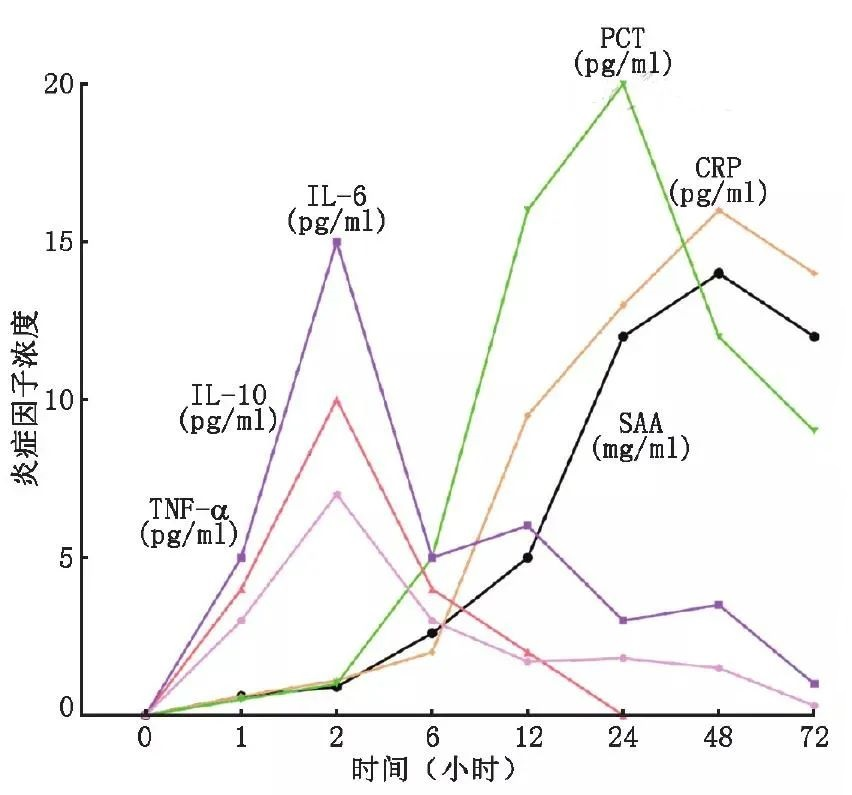 呼吸道感染時患者血漿或血清中炎性標志物變化趨勢圖