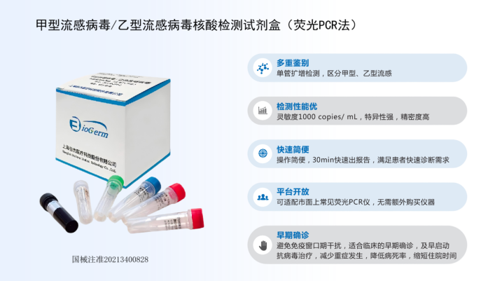 伯杰已推出甲型流感病毒/乙型流感病毒核酸檢測試劑盒(熒光PCR法),具有快速準確的檢測能力,僅需30分鐘即可完成,極大地滿足了門急診及住院患者對于迅速診斷的需求,為早期發(fā)現(xiàn)、及時干預提供了強有力的支持。